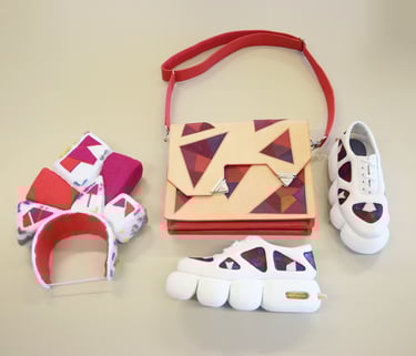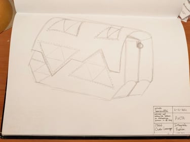 Mijn tas is een onderdeel van een collectie bestaande uit een diadeem, een paar schoenen en een tas. Deze zijn ontworpen en gemaakt door mij, Owen van den Berg en Daisy Vink. De producten zijn geïnspireerd op de collecties van LEW Design, een Nederlands ontwerpersduo.