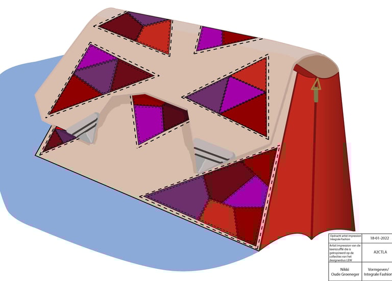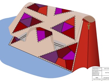 De zadeltas die is gemaakt is geïnspireerd op de Amsterdamse school stijl. Hiervoor is een bezoek gebracht aan museum ’t Schip in Amsterdam. Ik heb mij laten inspireren door de ladder ramen en de kleuren van het postkantoor. De vorm van de tas in gebaseerd op het gebouw op de binnenplaats, ook wel de haard genoemd.