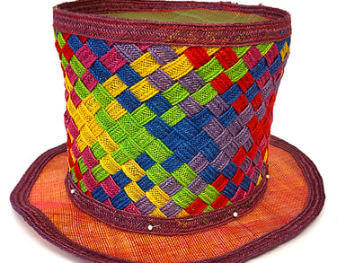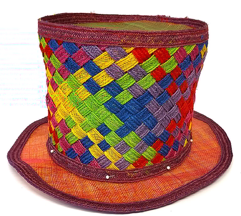Deze hoed is gemaakt van sisal bandstro dat door elkaar is geweven.
