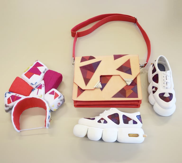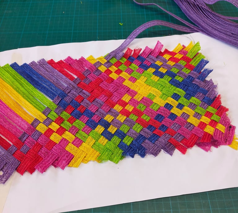 Ontdek mijn unieke tassen en hoed, vervaardigd tijdens mijn tweede leerjaar van de opleiding.