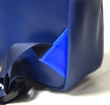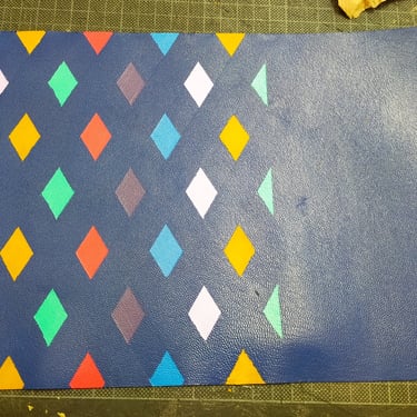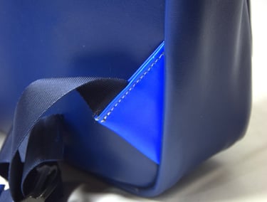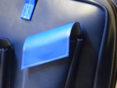 De klep aan de binnenkant heb ik met de hand erop geverfd. De tas is van buiten vrij basic, maar is van binnen vel blauw.
