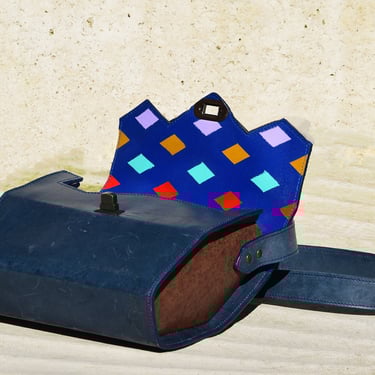 De crossbody heeft een zeshoekig design, heeft een aangestikte bies en is gemaakt van plantaardig gelooid leer. Dit houdt in dat er geen chemicaliën zijn gebruikt tijdens het looiingsproces en er enkel natuurlijke materialen aan te pas zijn gekomen. Denk hierbij aan boomschors, boomwortels, ect.