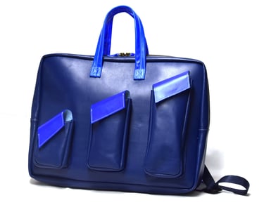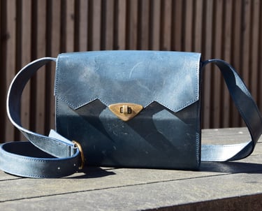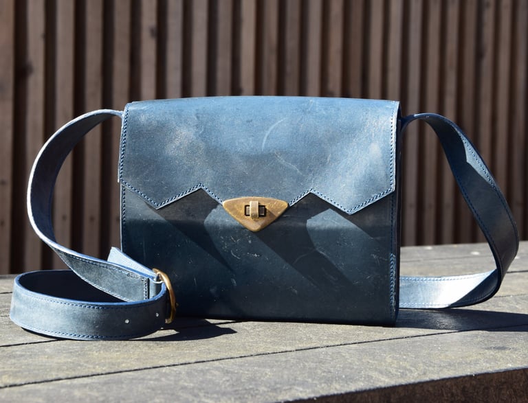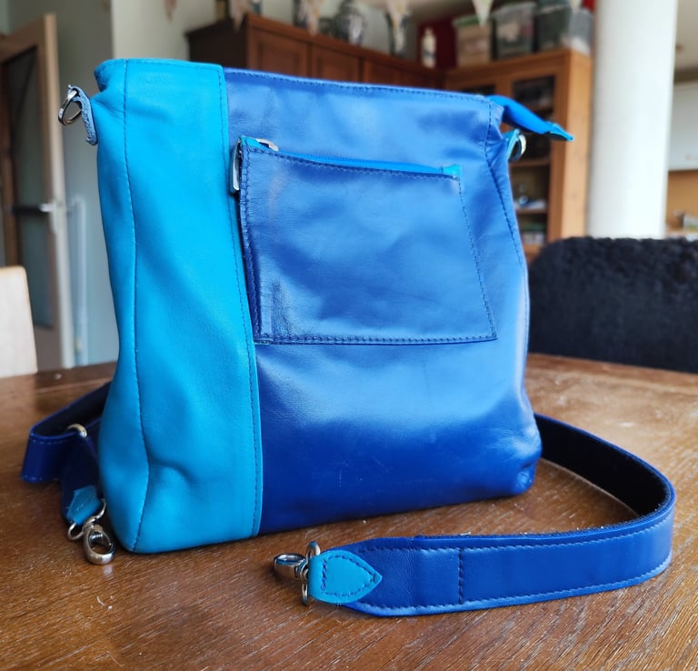 De tas heeft aan de binnenkant een ritsvak en is gevoerd met prachtig kobalt blauw leer.