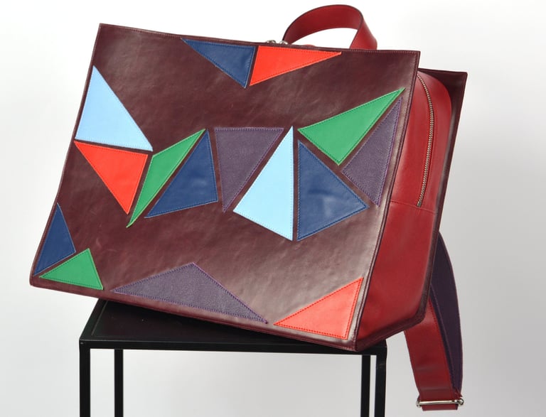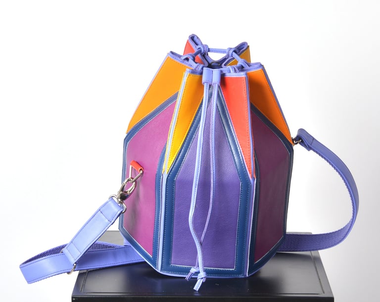Deze hoekige tas heet “Faida”, wat betekent “de vleugels die gevouwen zijn”. Dit staat voor de bovenkant van de tas die in elkaar vouwt.